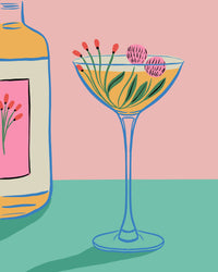 This is an 8 x 10 art print of a botanical cocktail inspired by retro travel posters. It is an original illustration by female artist, Tara Reed. A modern floral to brighten your home.